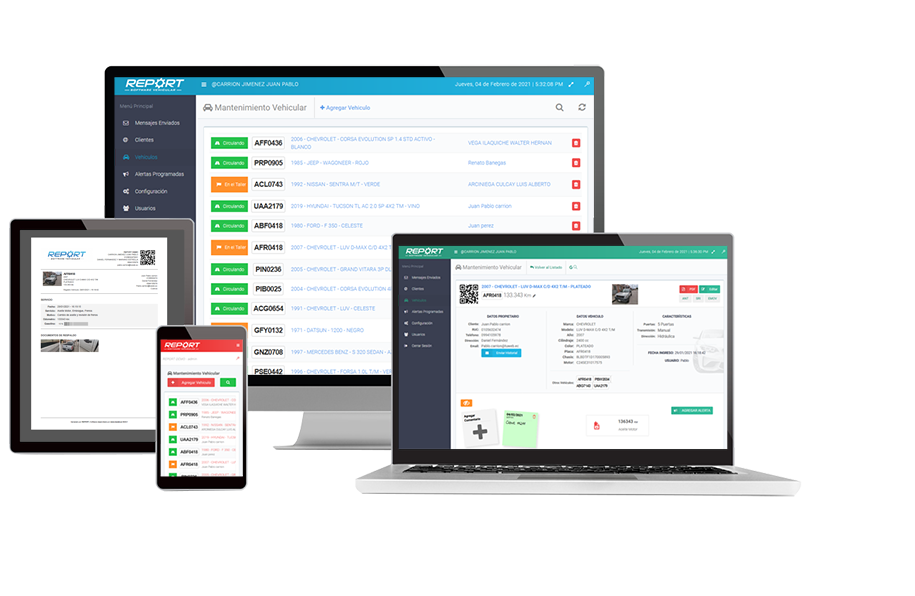 REPORT es un herramienta que te permite llevar un control más exacto de tu taller, organizando la información de manera ágil y oportuna, ayudando a tener un control más exacto de los vehículos y mantenimientos realizados a traves del tiempo.